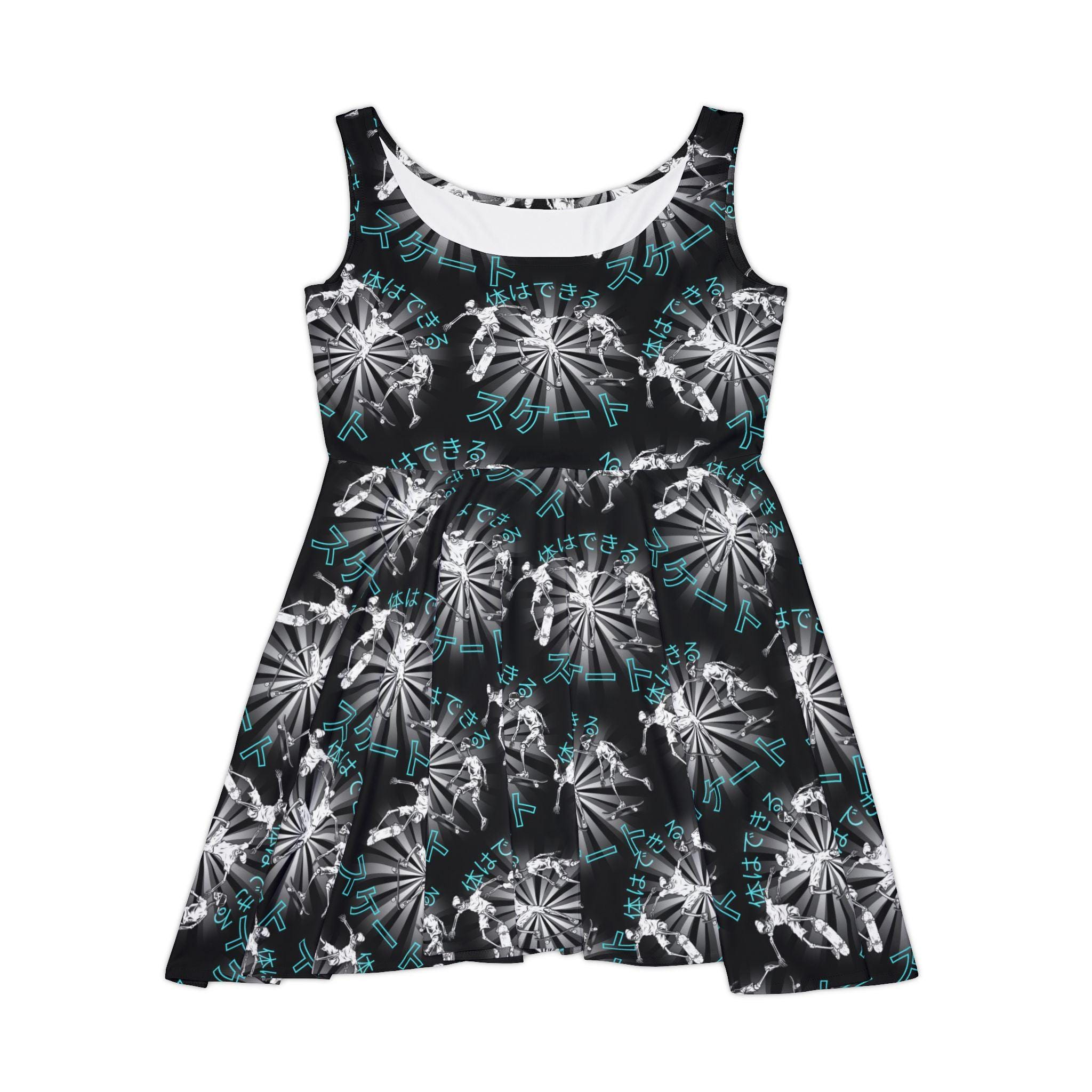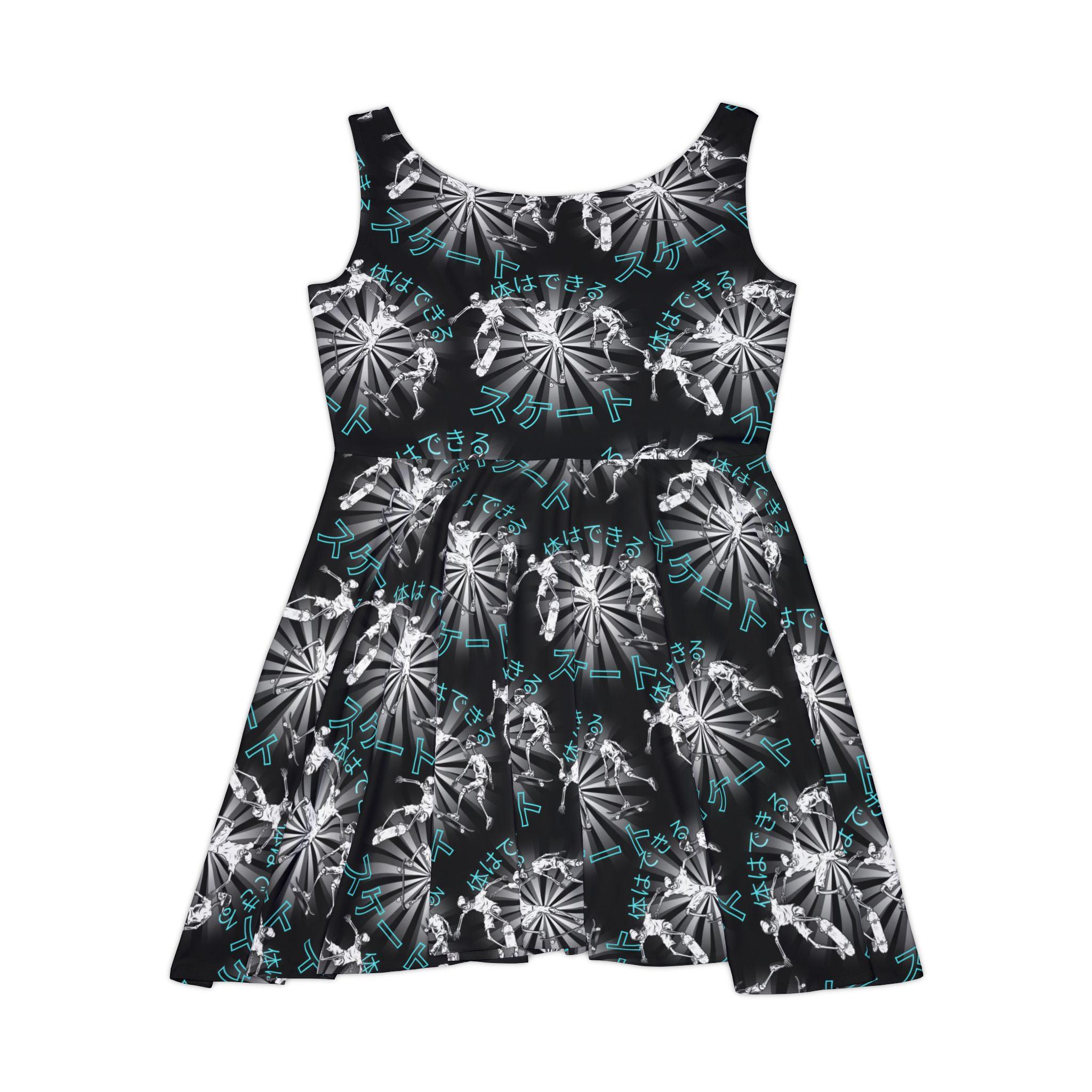 Funky Japanese skater Floral Skater Dress, perfect for trendy casual wear or summer outfits. It's ideal for parties, festivals, and unique fashion statements. This dress exudes a fun and vibrant vibe, fitting seamlessly into a buyer's wardrobe for various occasions. Target audience includes young women looking for stylish and unconventional clothing choices, relevant for summer parties, festivals, and casual hangouts.