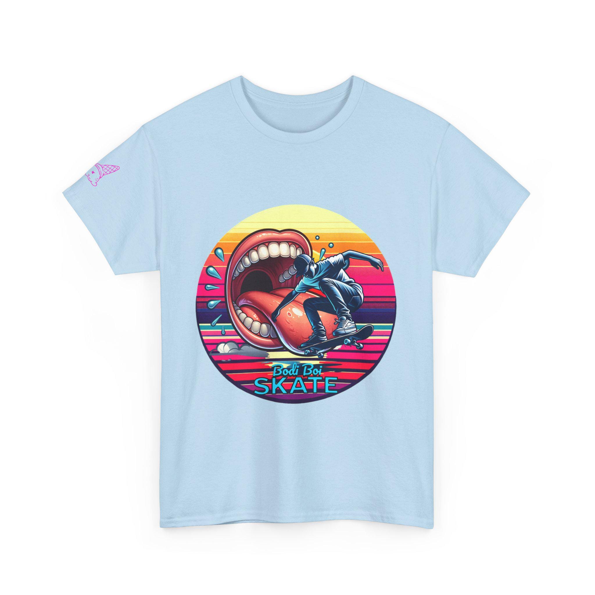 Introducing the perfect blend of comfort and style: our Unisex Heavy Cotton Tee. This tee radiates a vibrant, retro vibe that captures the essence of fun and adventure, making it a great addition to your casual wardrobe. With its eye-catching design, it serves both as a statement piece and a versatile staple that complements various outfits. Perfect for skate enthusiasts and lovers of bold art, this shirt is ideal for casual outings, skateboarding events, and gatherings with friends. Celebrate your individuality during the summer months, birthdays, or any festivity where self-expression shines. Wear it with pride and let your personality speak!