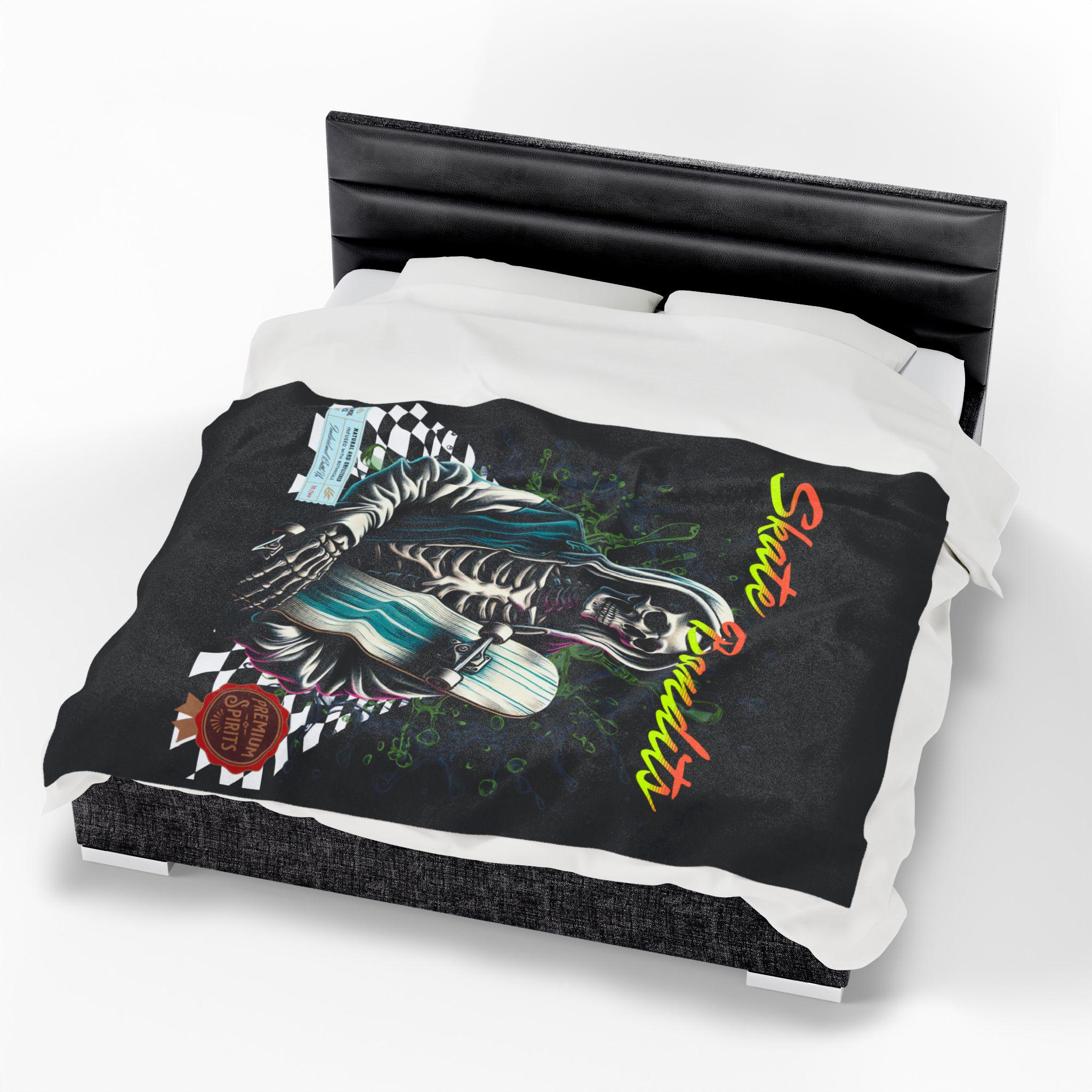 Wrap yourself in comfort and style with this Velveteen Plush Blanket. Perfect for cozy nights in, this blanket adds a touch of character to your living space, especially for fans of unique art and skate culture. Its vibrant design invokes a fun and relaxed vibe, making it an excellent companion for movie nights, reading, or simply lounging around. This blanket is perfect for young adults and skateboard enthusiasts looking to infuse their style into everyday relaxation. It's an ideal gift for holidays like Christmas, Halloween, or for special occasions like housewarmings, making any space feel immediately inviting and warm.