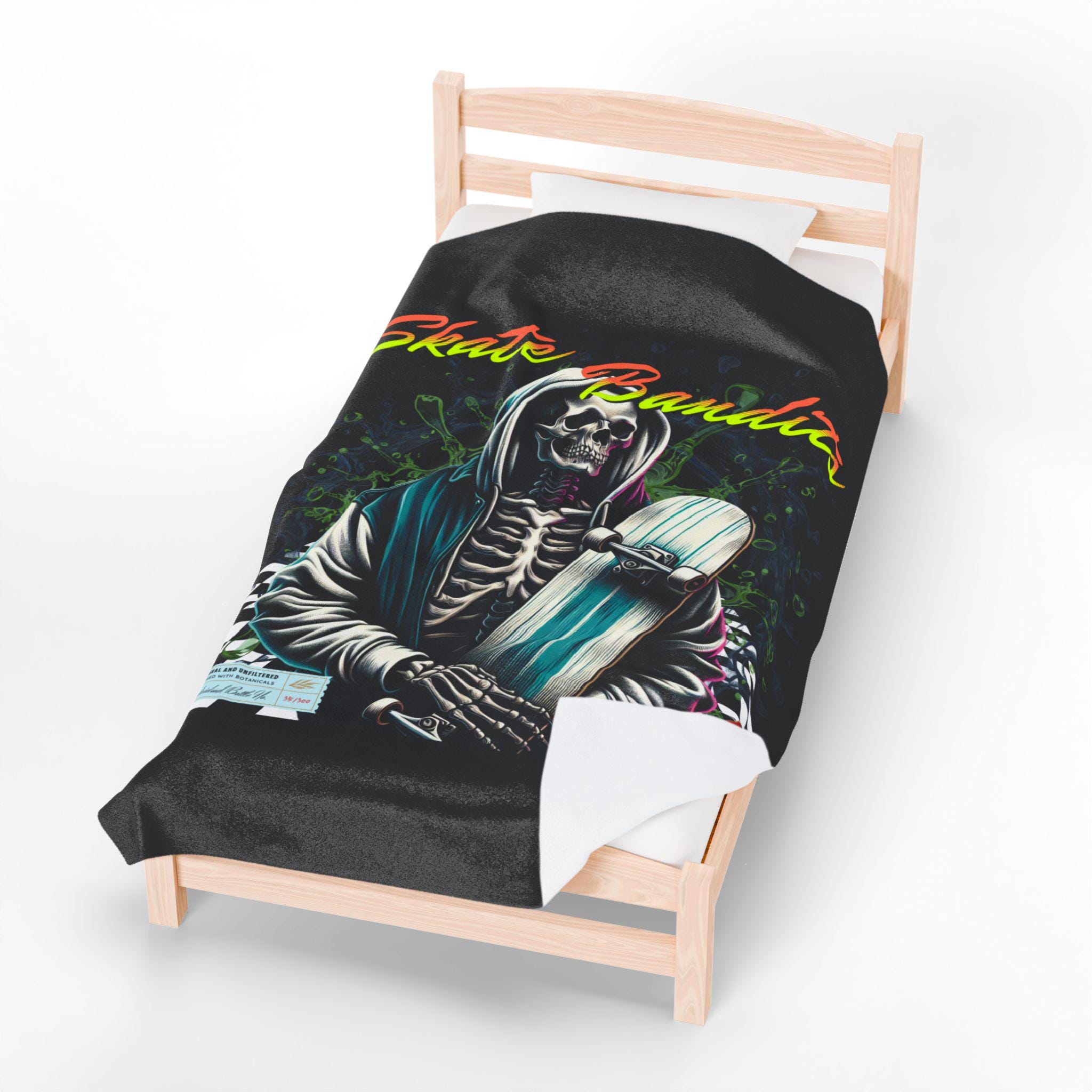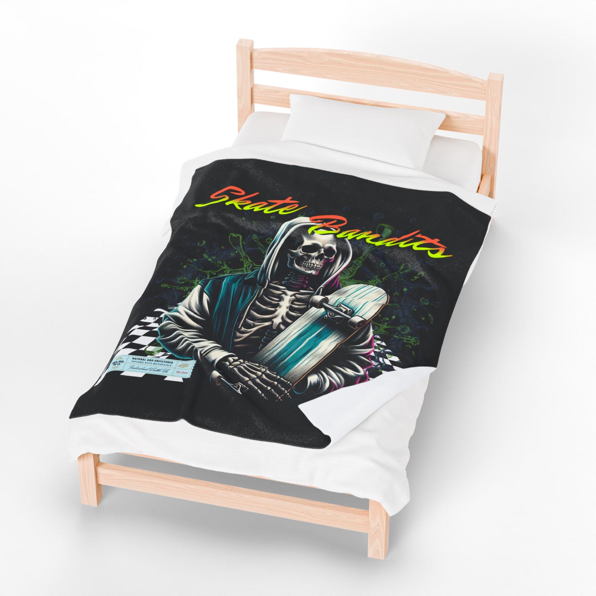 Skate Bandits Velveteen Plush Blanket - Cozy Throw for Skaters, Home Decor, Gift for Skateboard Lovers, Halloween Blanket, Retro Vibe