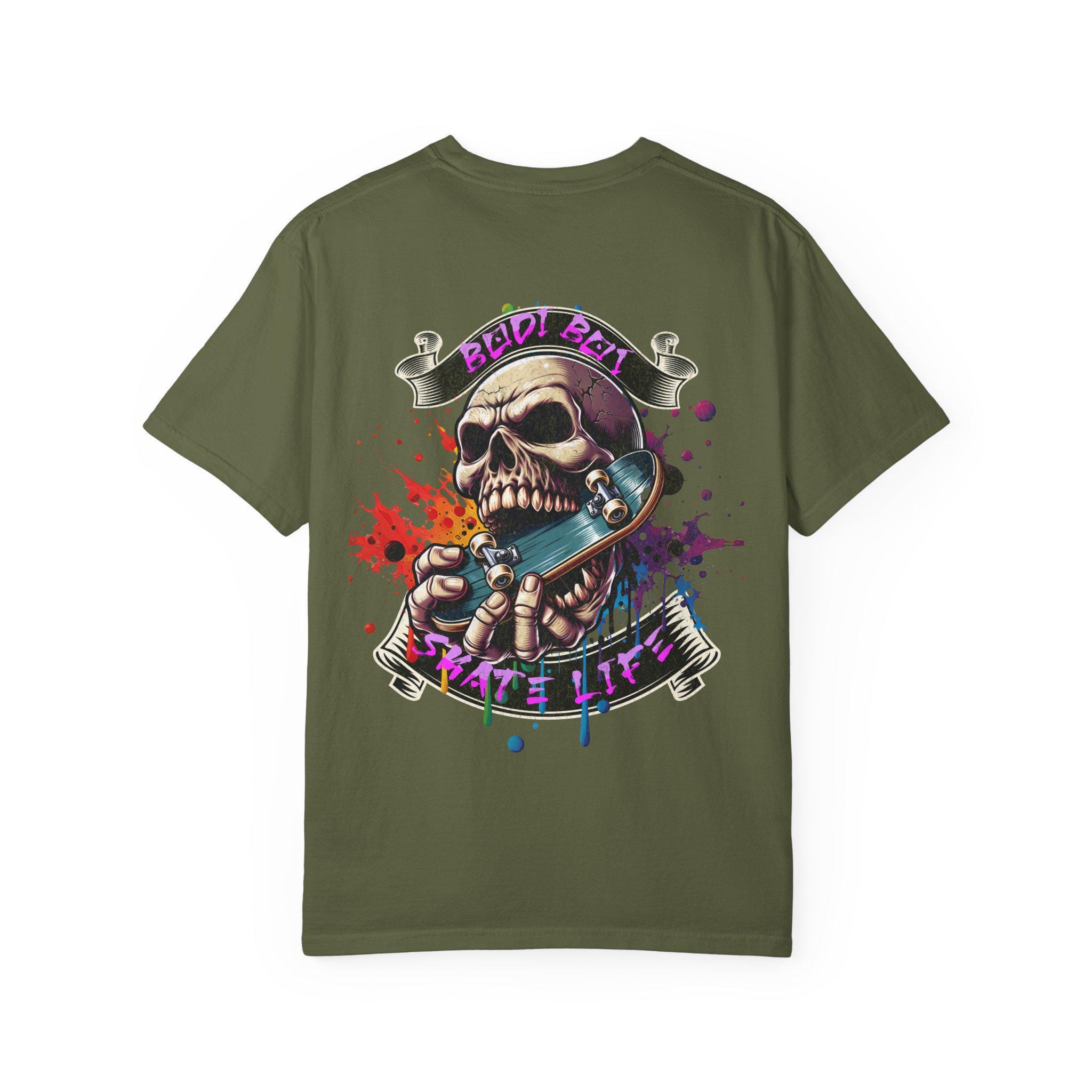 Elevate your wardrobe with this Unisex Garment-Dyed T-shirt, designed for those who appreciate unique style and comfort. The bold and artistic graphics create a vibrant yet laid-back atmosphere, making it the perfect addition to any casual or semi-formal outfit. Ideal for skate enthusiasts and art lovers alike, this shirt effortlessly blends personality with practicality. Wear it during music festivals, casual outings, or as a statement piece in your everyday attire. It's a perfect gift for birthdays, holidays, and special celebrations, bringing a thoughtful touch to any occasion.
