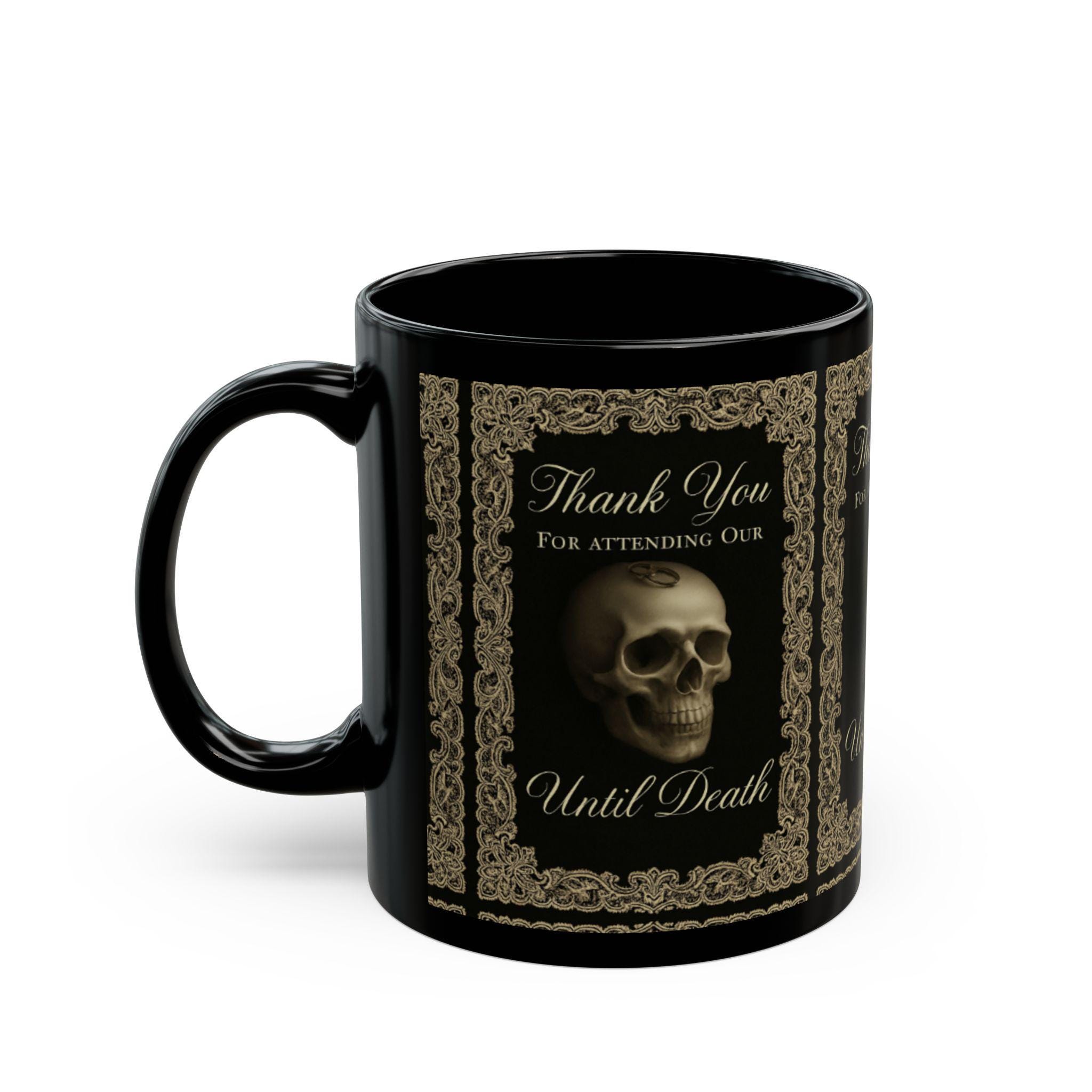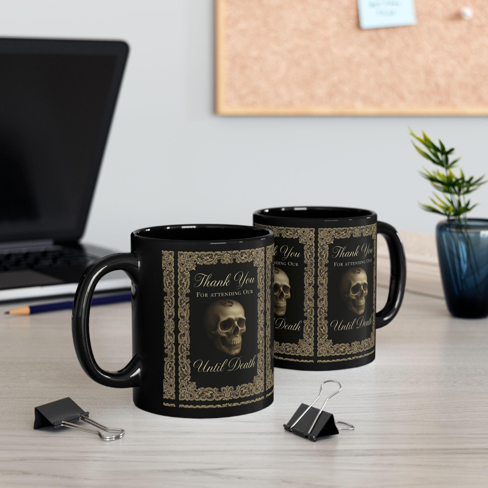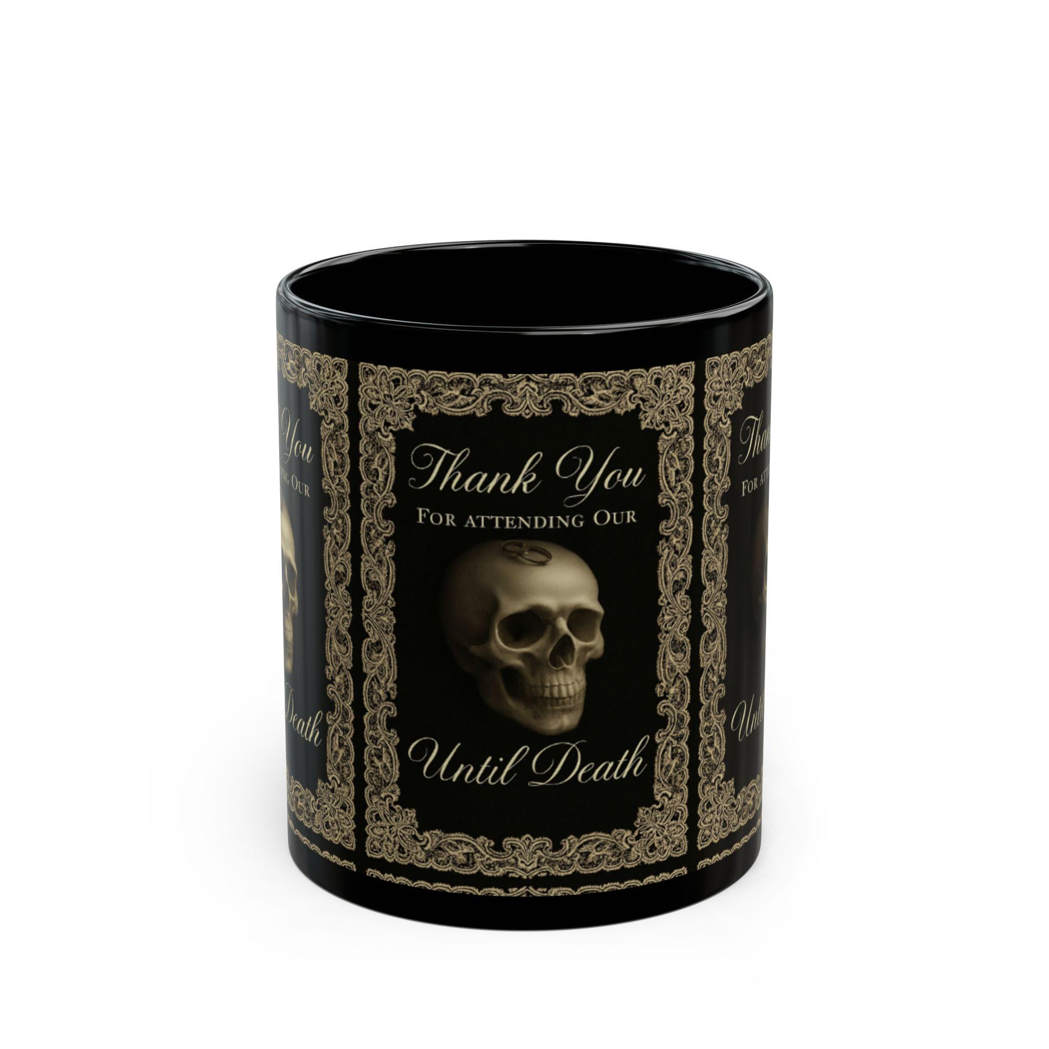 Introducing a sleek and captivating black mug that adds character to your daily coffee ritual. This stunning piece, crafted from glossy ceramic, features vibrant designs that pop with color, perfect for those who appreciate unique and artistic beverages. Whether you're sipping your morning coffee or enjoying a cozy tea in the evening, this mug brings a sense of elegance and creativity to every moment. Ideal for gothic enthusiasts or anyone who loves a touch of the macabre, it makes for a great conversation starter. This mug is perfect for gifting on special occasions such as Halloween, birthdays, or simply as a treat for yourself during those relaxing afternoons at home.