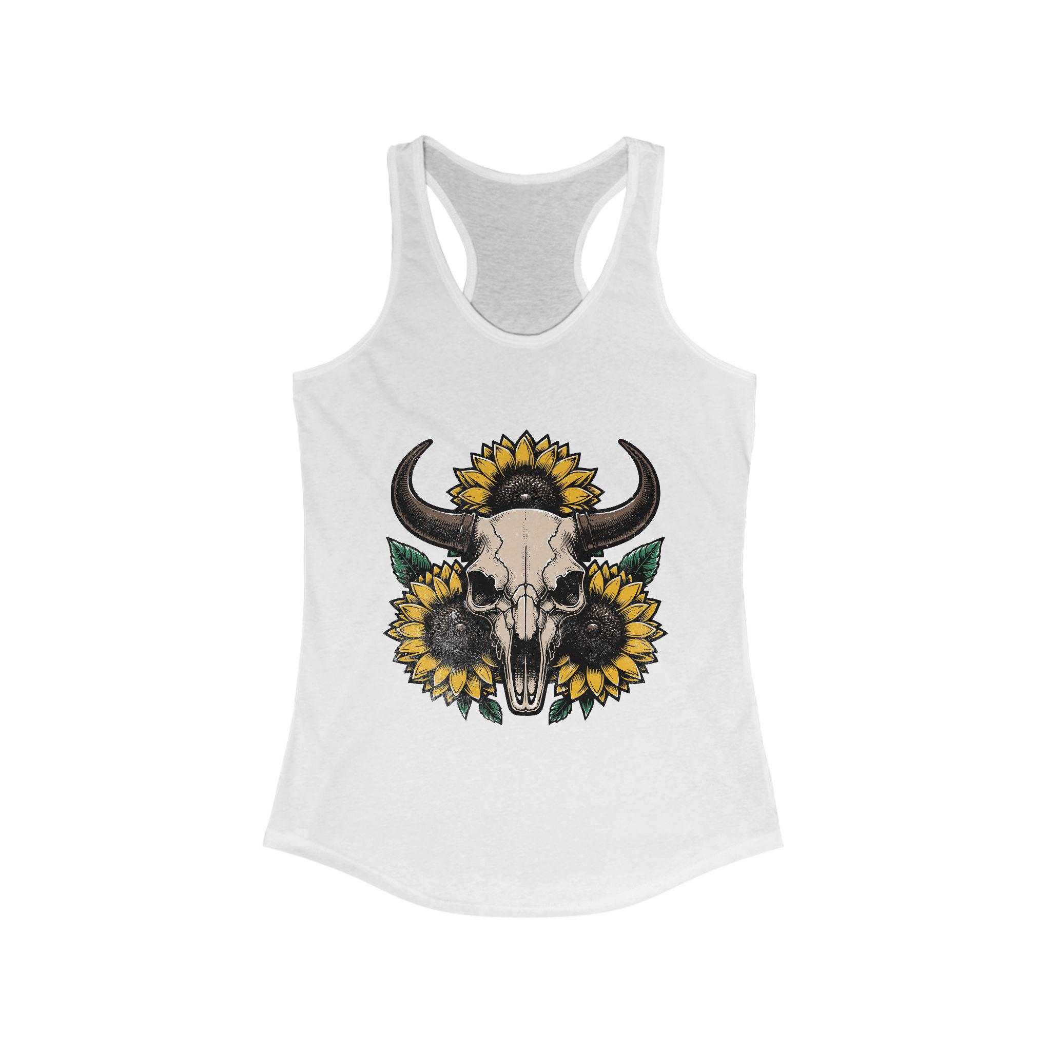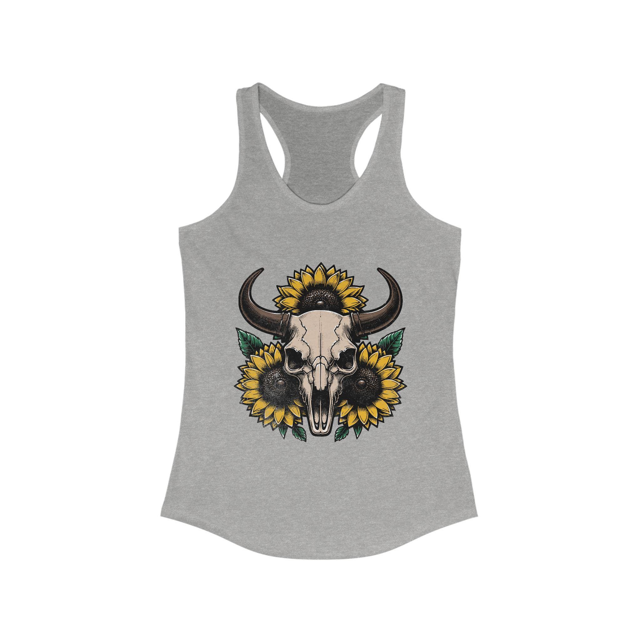Embrace your active lifestyle with this stylish Women's Racerback Tank. Crafted from a luxurious blend of 60% combed ring-spun cotton and 40% polyester, this tank promises ultimate comfort while maintaining a flattering fit. The lightweight fabric, at just 4 oz/yd², allows for breathability and ease of movement, making it perfect for workouts or casual outings. Its classic fit and scooped neckline add a sporty touch to any outfit, whether you’re at the gym or enjoying a weekend brunch. With a design featuring bold sunflowers and a striking skull motif, this tank is not just clothing; it's a statement. Ideal for those who celebrate individuality and seek comfort without sacrificing style, this piece is perfect for summer vacations, music festivals, and laid-back gatherings. Also makes a great gift for birthdays, holidays, or just because.