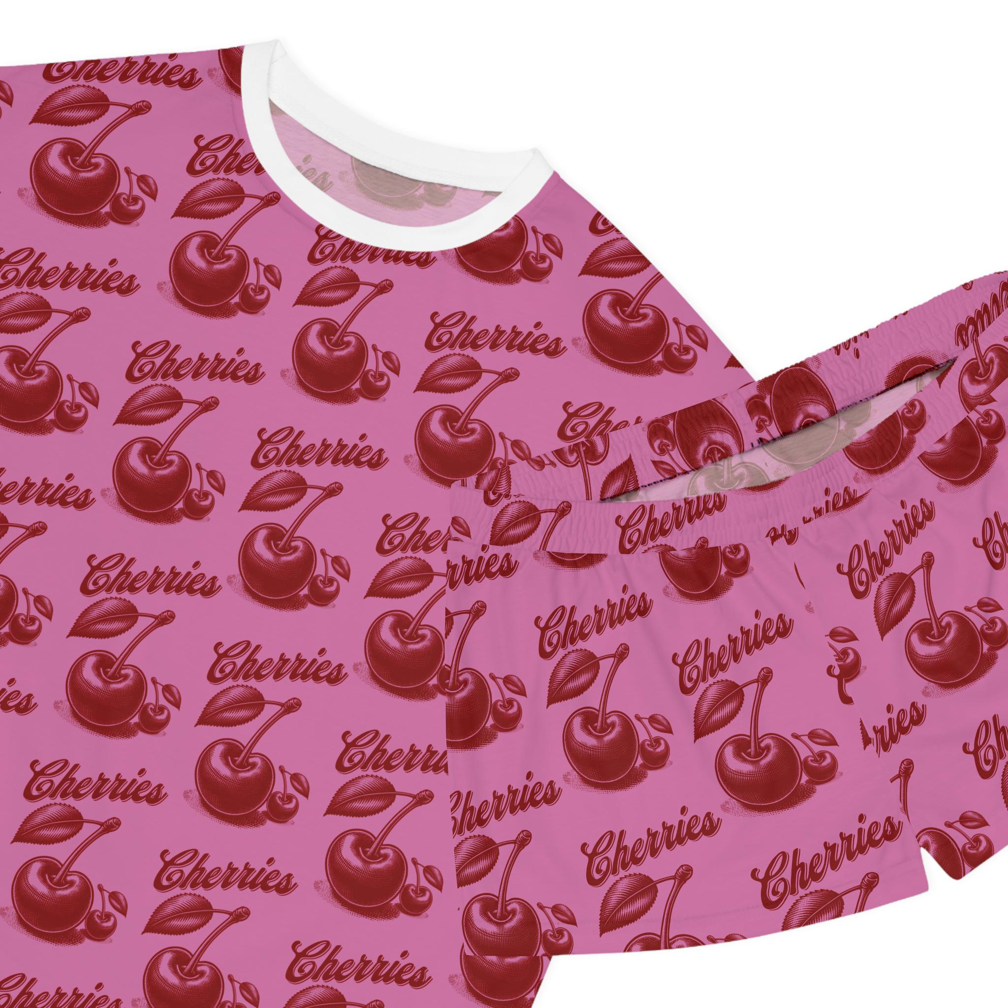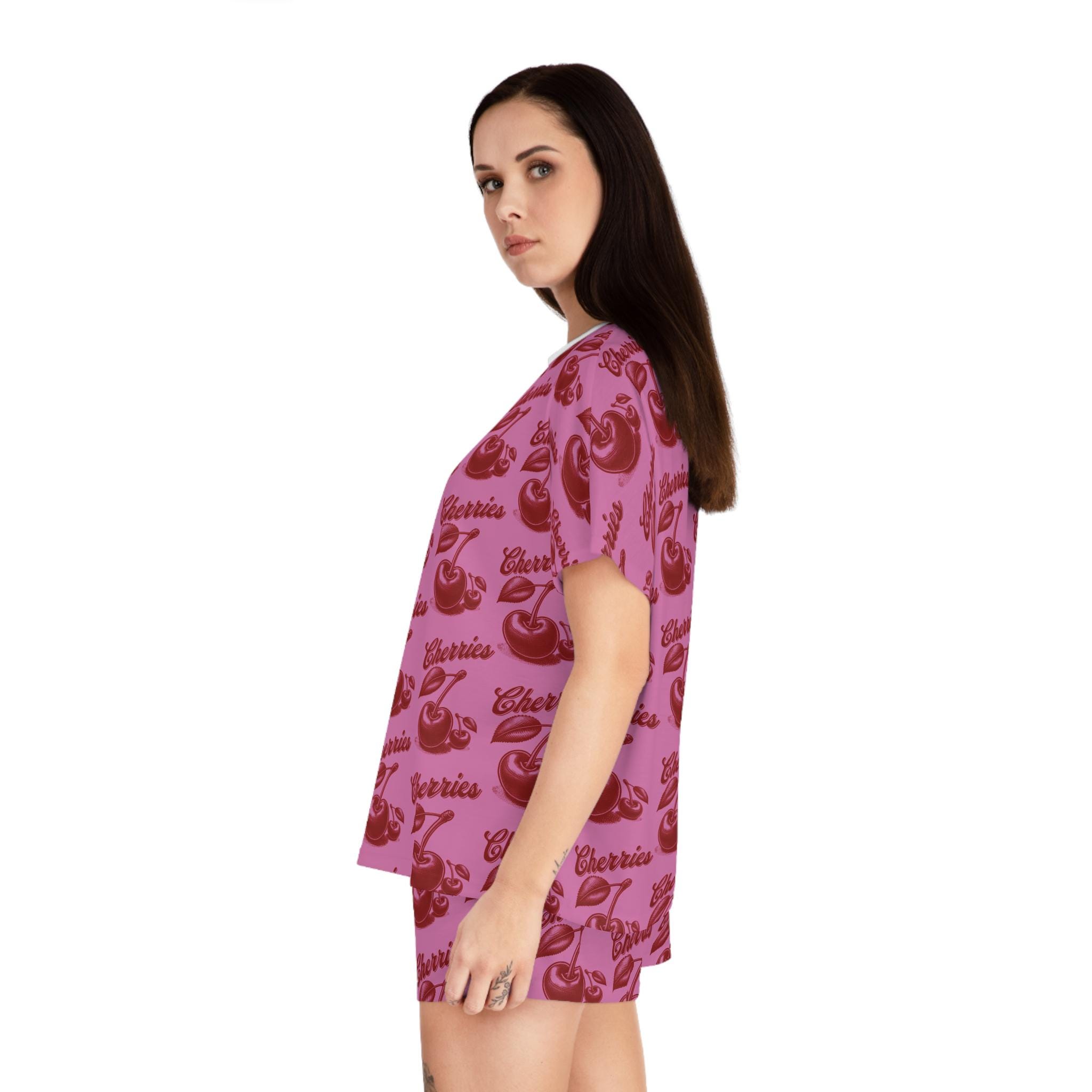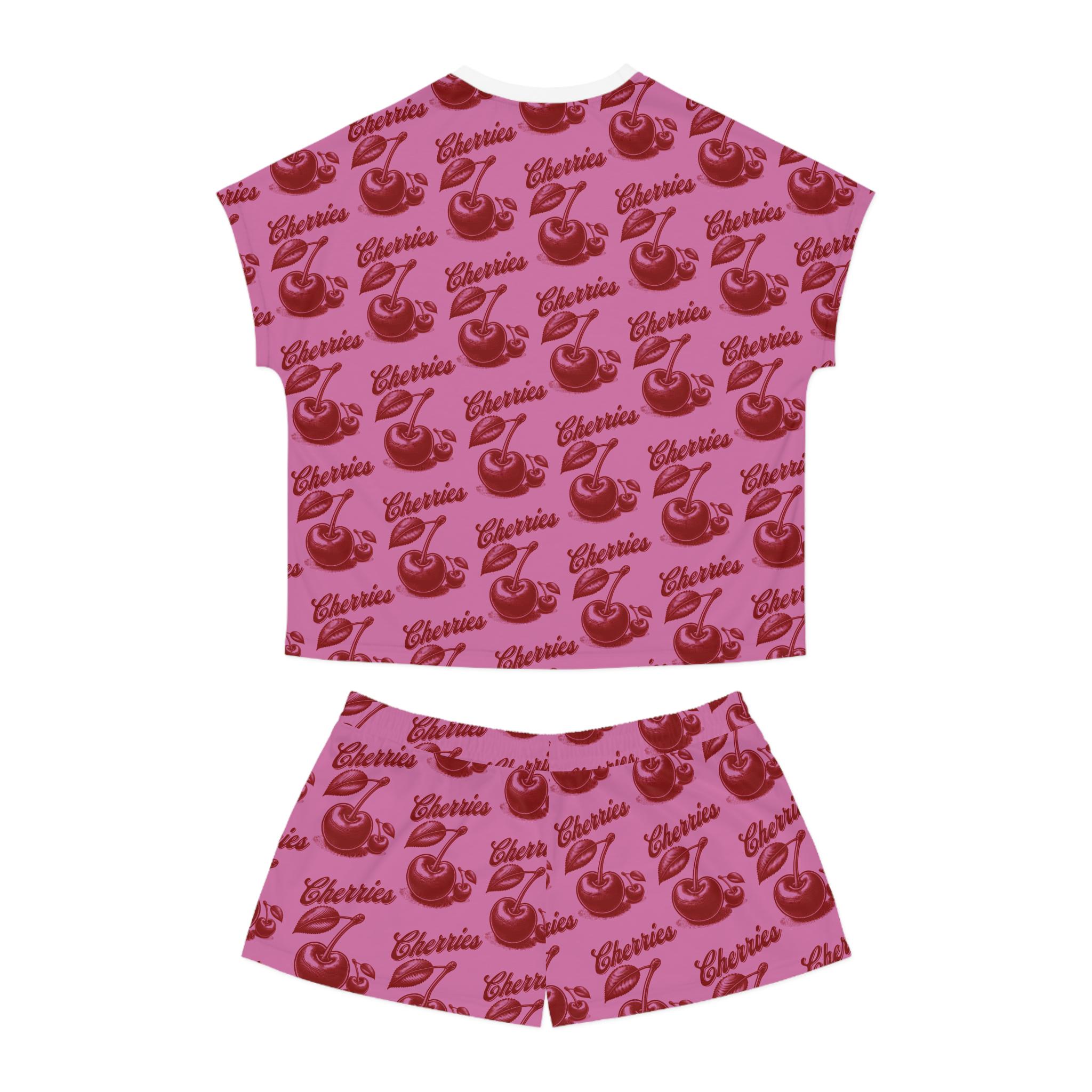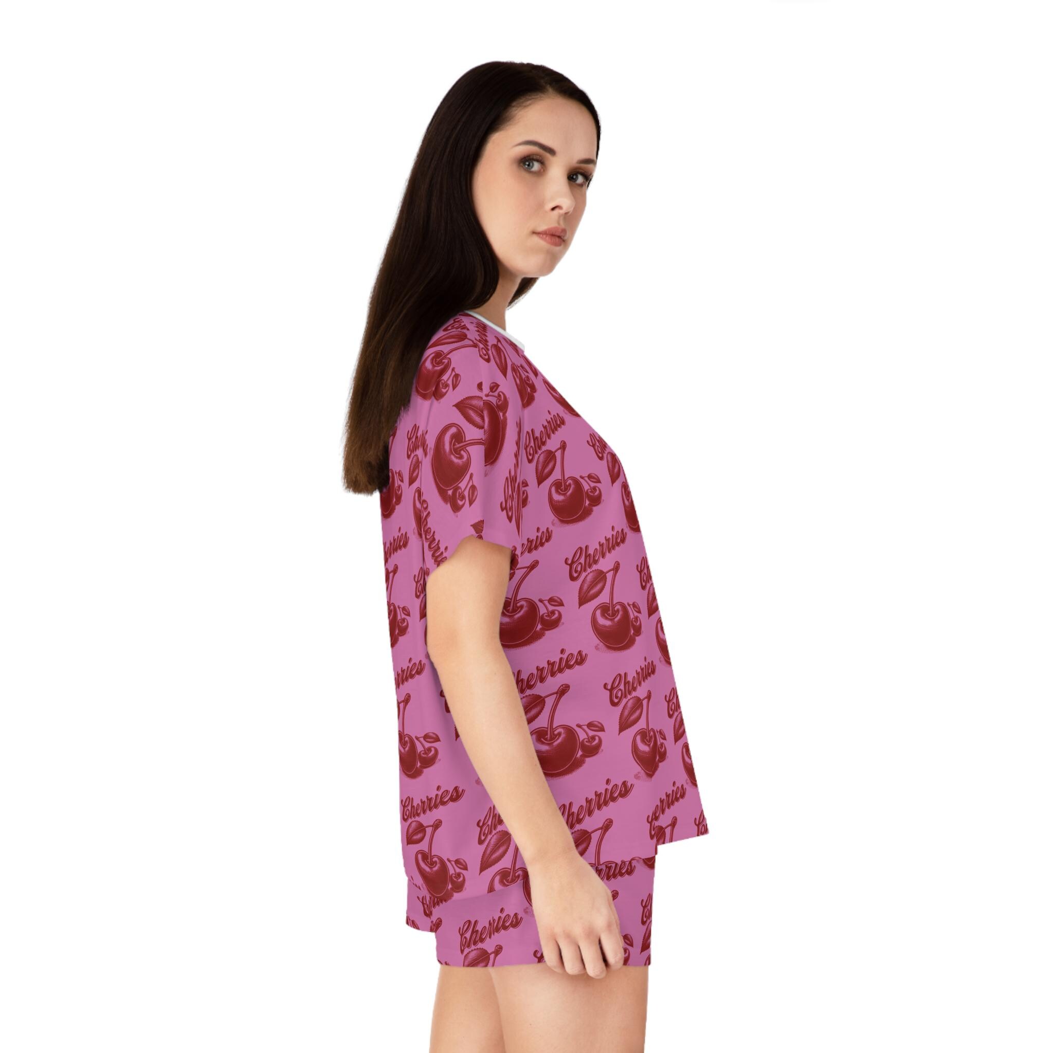 Stay cozy and cute in these cherry-themed pajamas. Made with a soft polyester and cotton blend, these pajamas feature a ribbed collar, elastic waistband, and a relaxed fit for ultimate comfort. Perfect for women looking for a fun and stylish sleepwear option.