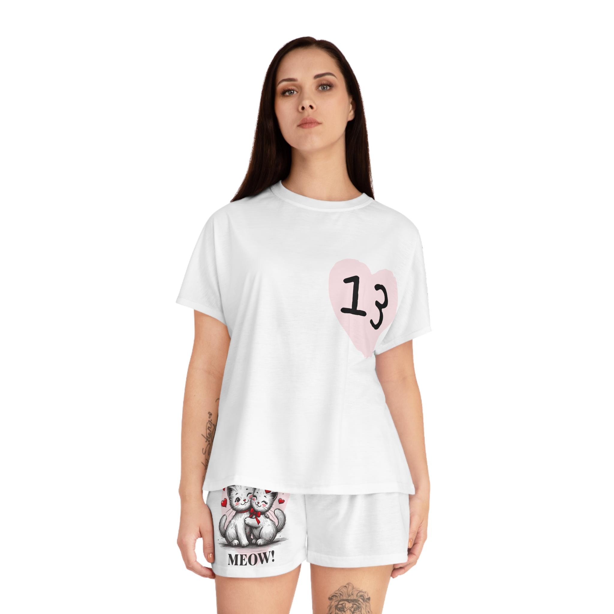 Enjoy your nights in comfort and style with this Women's Short Pajama Set. Made from soft materials, it offers a relaxed fit that feels great against the skin. Perfect for cozy evenings at home, this set is ideal for lounging, reading, or catching up on your favorite shows. It has a fun, playful vibe that adds a touch of charm to bedtime routines. Whether you're treating yourself or looking for a delightful gift, this pajama set is a wonderful choice for sleepovers, birthdays, or just because. Perfect for cat lovers and those who enjoy a bit of whimsy, this pajama set makes every night feel special.