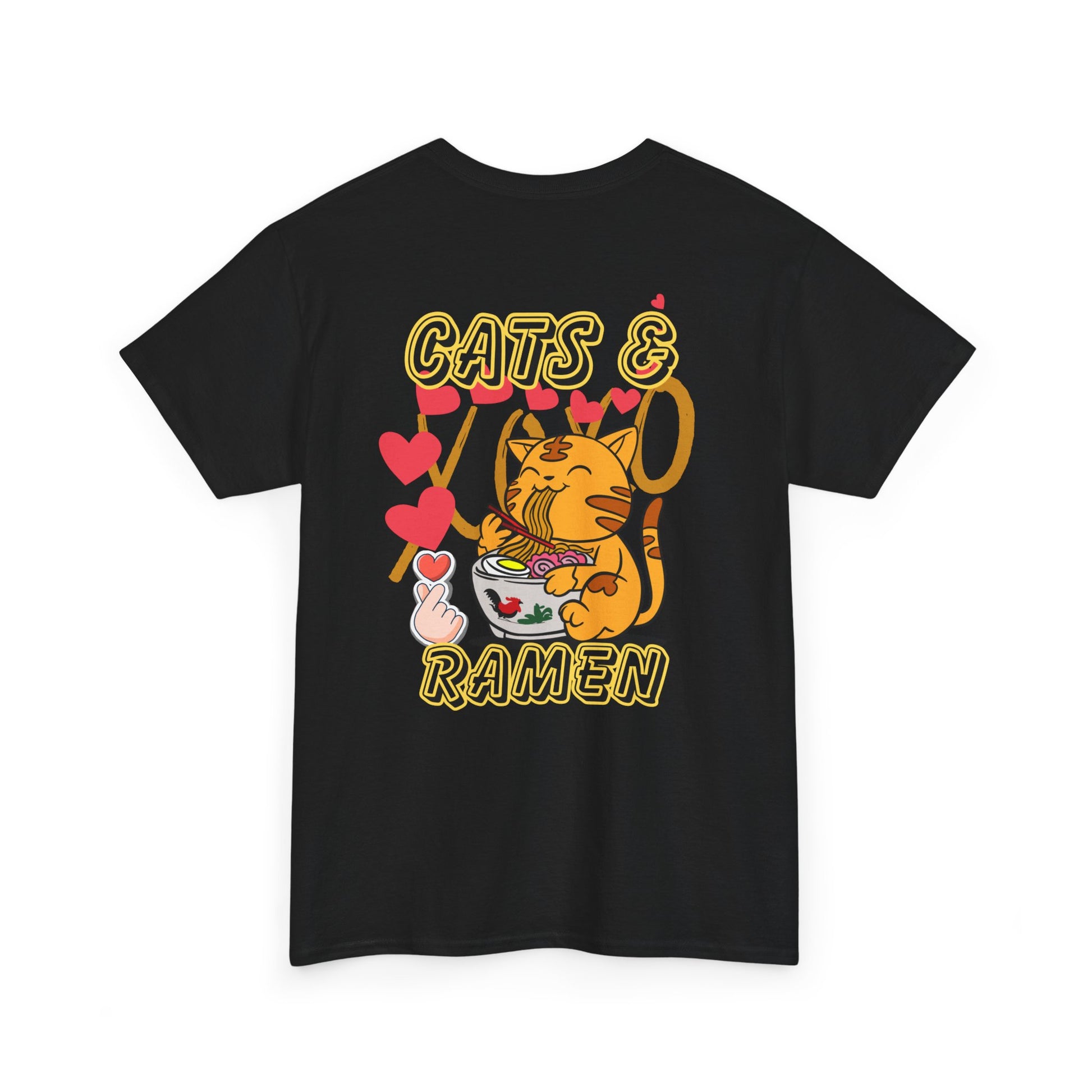 This black cat Tee is the perfect gift for cat lovers, featuring a unique design of a cute cat eating ramen. Made from specially spun fibers, this Tee is strong and smooth, perfect for printing. It is a comfortable and versatile piece that can be worn casually or semi-formally, adding a touch of charm to any outfit. Ideal for cat lovers and those who enjoy quirky, fun apparel. Relevant for birthdays, holidays, and casual wear.