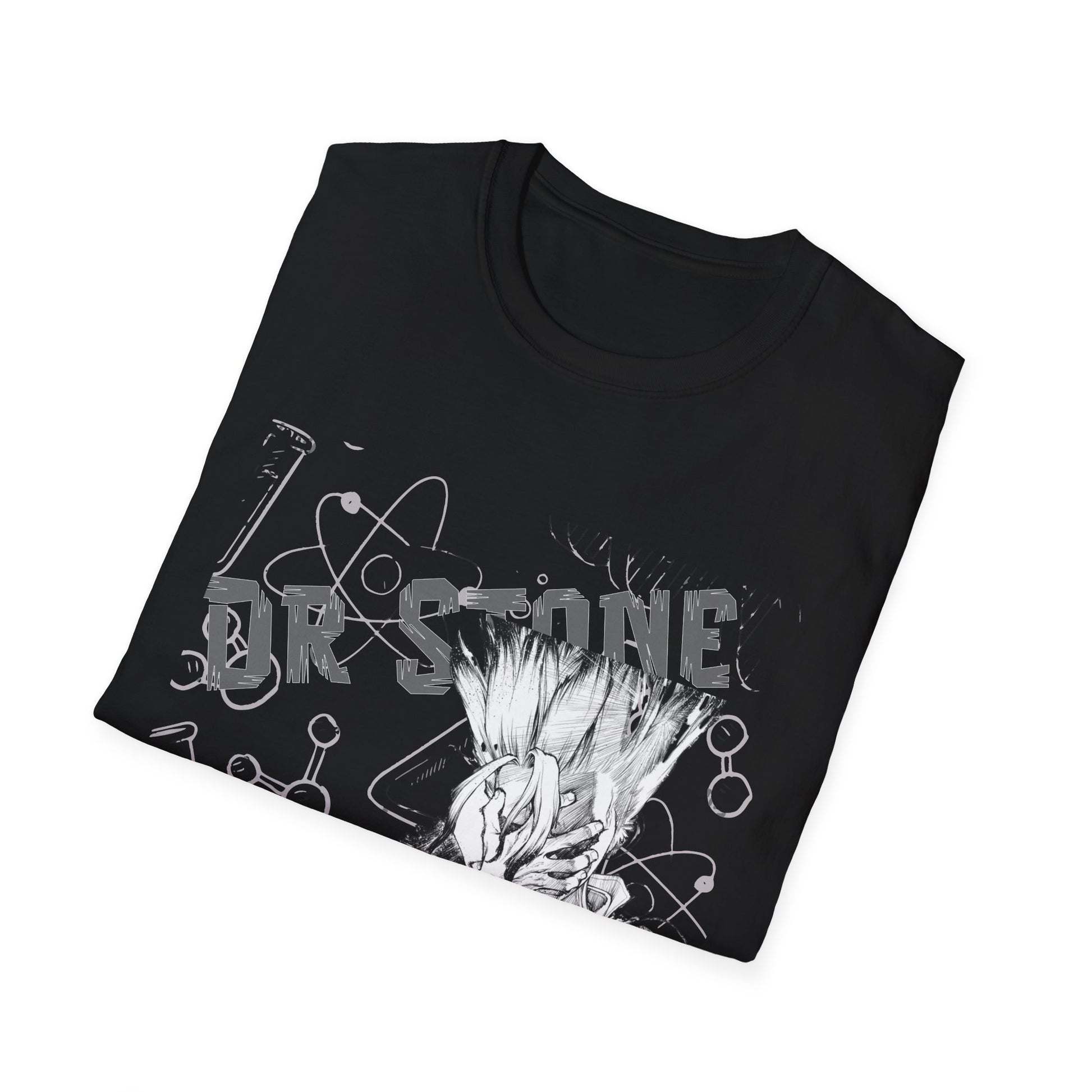 This tee carries a mood — dark, scientific, and quietly defiant. A monochrome collage of lab glassware, molecular sketches, and a clenched-gloved hand forms a gritty, almost cinematic centerpiece across the chest. Lightweight ring-spun cotton drapes easily and breathes, so the design reads like part of you whether you're wandering city streets, sketching in a late-night lab, or layering under a jacket for shows. The crew neck and classic cut keep the silhouette clean while the tear-away label and stitched shoulder tape make it comfortable enough to reach for again and again. Wear it when you want an understated, intellectual edge — a graphic that speaks to curiosity, craft, and late-night focus without shouting for attention.